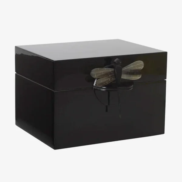 Añada un toque de elegancia a su hogar con la Caja Lacada B de la Colección Libélula. Esta exquisita caja lacada, de 18x14x12 cm, está fabricada en madera MDF de primera calidad y acabada con 13-15 capas de lujoso lacado negro, lo que garantiza una superficie brillante y duradera.