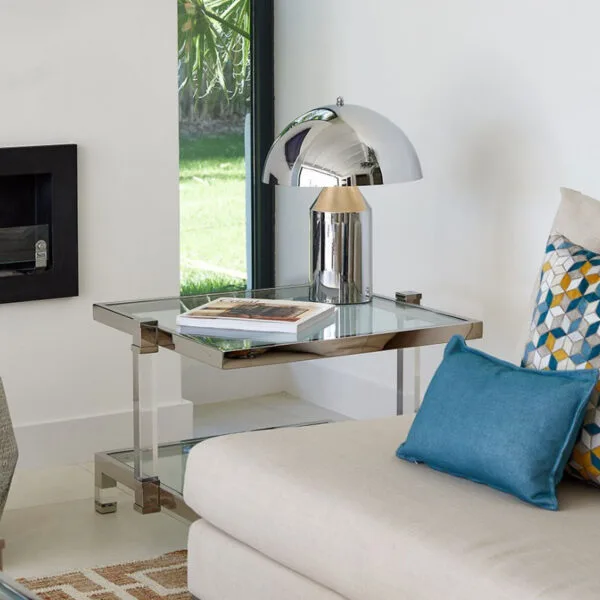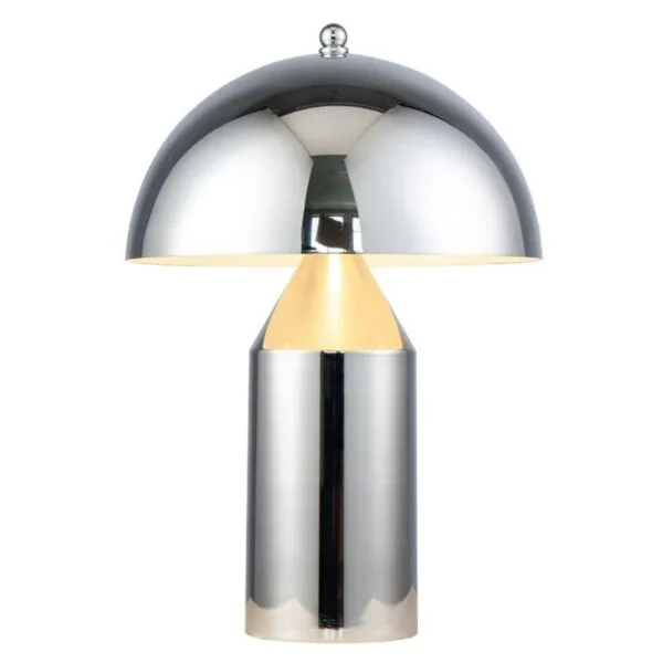 Dale un toque original y moderno a tu hogar con esta lámpara de sobremesa cromada, ideal para ambientes contemporáneos. Con una base y pantalla metálica de líneas limpias, esta lámpara combina funcionalidad y diseño. Su acabado cromado brillante aporta un aire de elegancia y sofisticación, convirtiéndola en el complemento perfecto para salones, dormitorios o despachos.