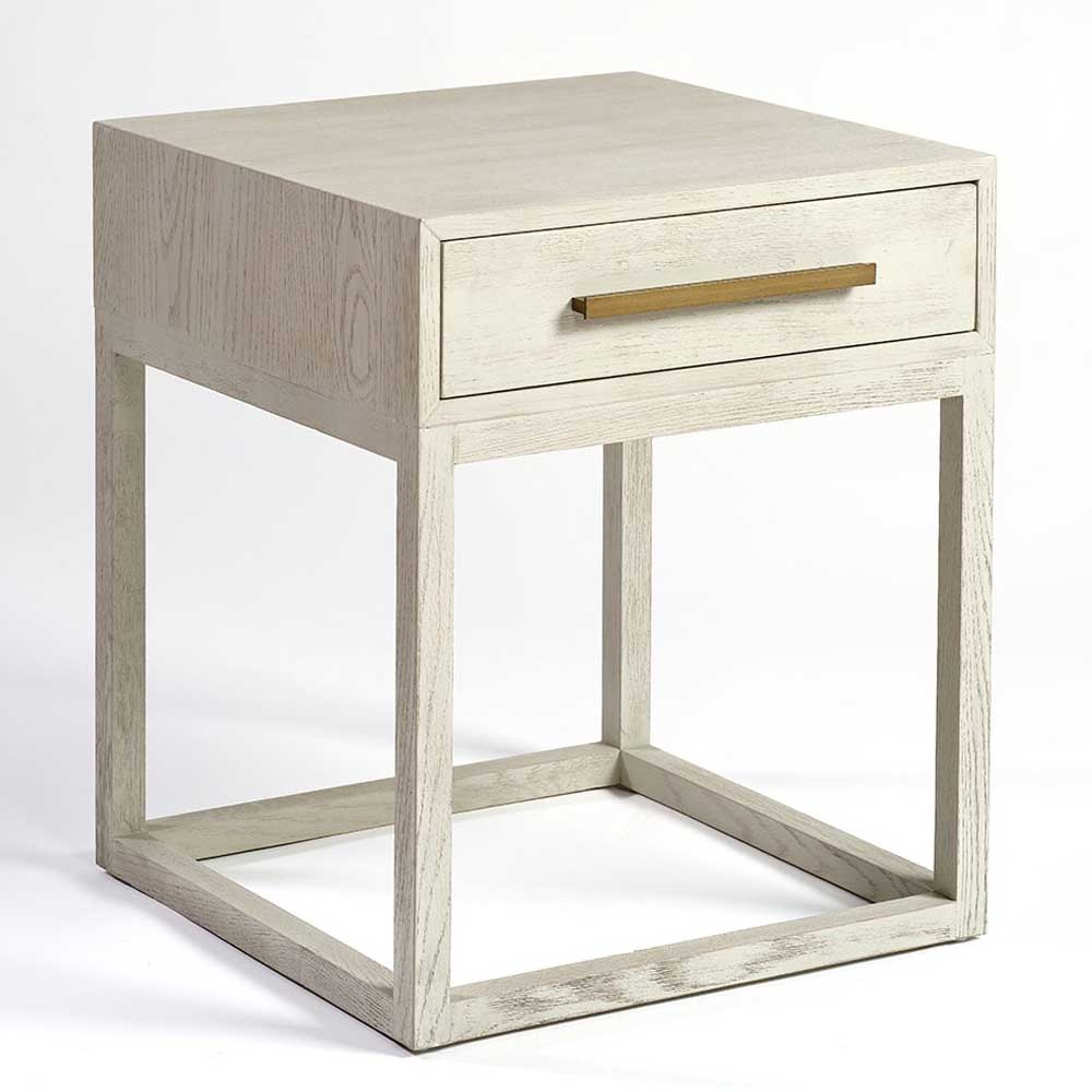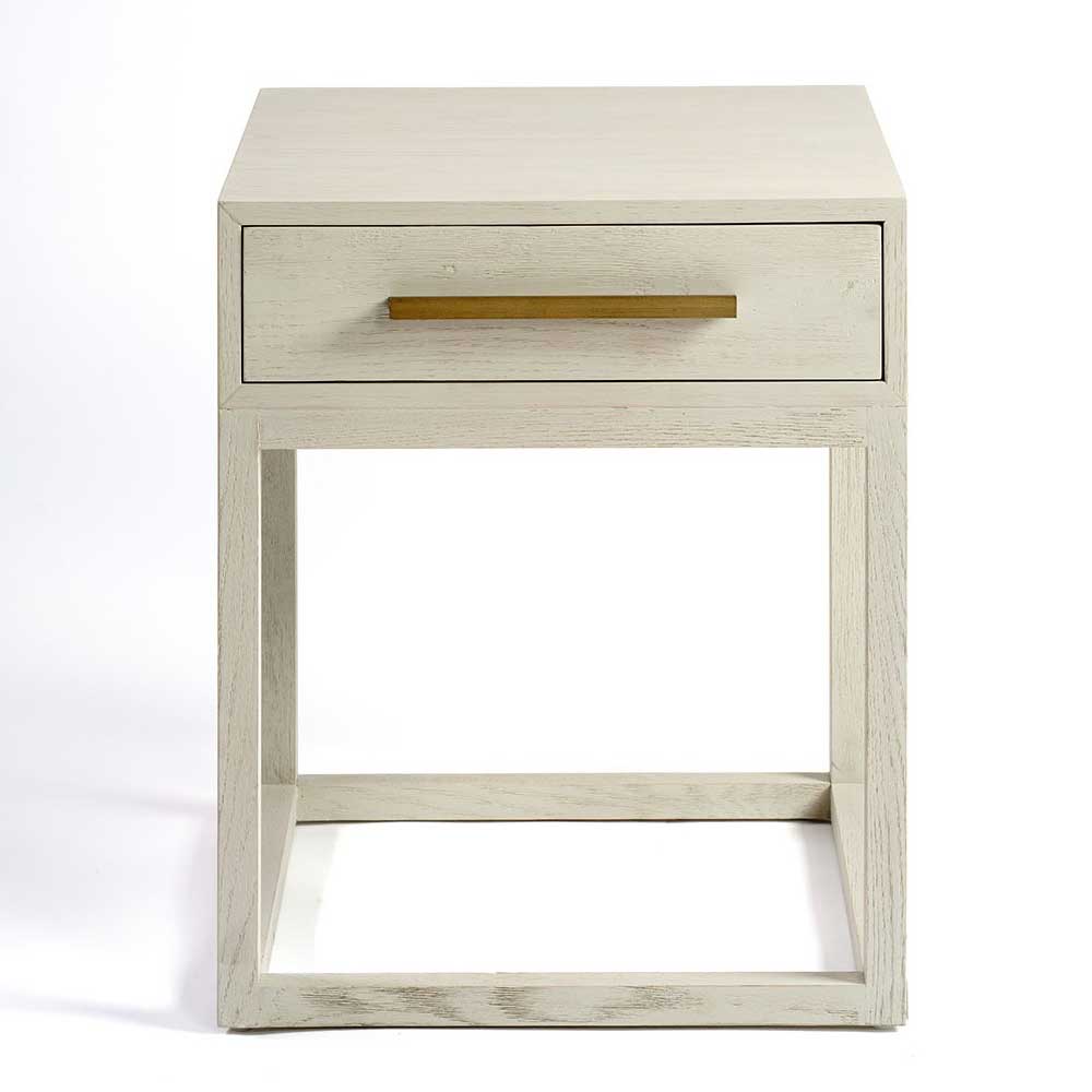 Mesita de noche en acabado de roble blanco grisáceo con base abierta de madera