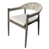 Nuestro sillón Ocean está diseñado con una estructura de aluminio con revestimiento en polvo antracita y cuerda trenzada gris.