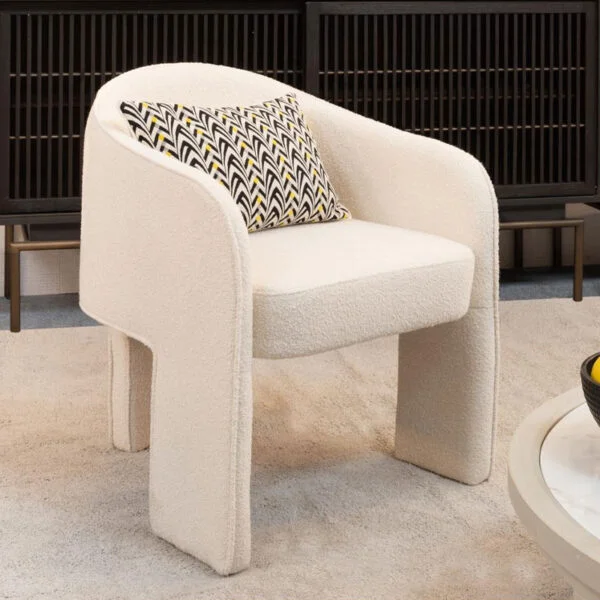 El diseño del sillón está pensado para proporcionar estilo y comodidad. Sus líneas limpias y su refinada tapicería lo convierten en una pieza atemporal que puede combinar fácilmente con varios estilos de decoración, desde el moderno al clásico. El suave color blanco roto añade un toque de elegancia, convirtiéndolo en un elemento destacado de su hogar.