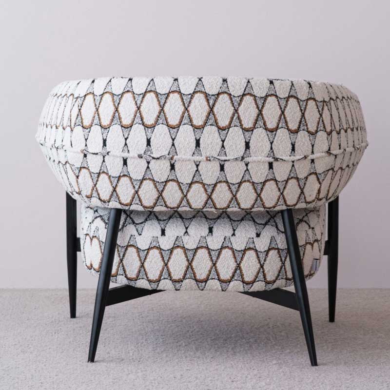 Sillón Tapizado Geométrico – Diseño Redondo Contemporáneo