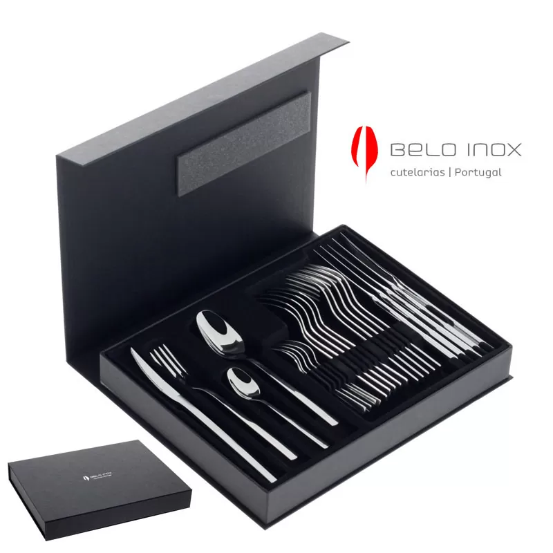 This elegant 24-piece cutlery set by Belo Inox comes in a unique, book-shaped case, combining functional design with refined presentation. Perfect for gifting or special occasions.