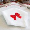 Enhance your table’s festive ambiance this holiday season by adorning it with exquisite white linen napkins meticulously embroidered with eight distinct motifs: a petite soldier, a candy cane, a majestic pine tree, a graceful reindeer, a regal crown, a delicate pine cone, vibrant holly, and a charming bow. These napkins effortlessly transform your meals into warm and inviting occasions, making them suitable for both special celebrations and everyday dining.