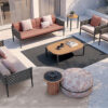 Where rope and aluminium come together, the Budapest set is born, consisting of a three-seater sofa, two armchairs and a coffee table with marble top.
