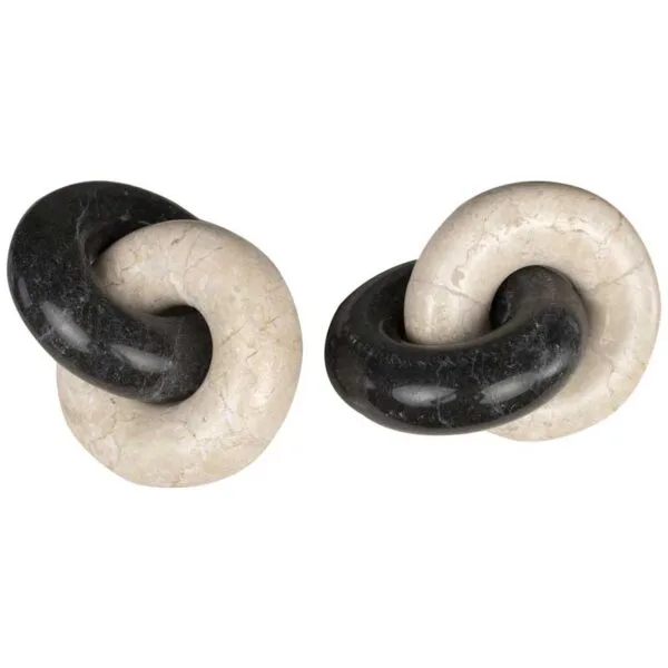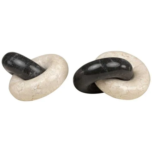 Elevate your interior with the Chain Object, a sculptural accessory handmade from polished cream and black marble. Its interlocking loop design adds dimension and texture to shelves, consoles, or coffee tables.