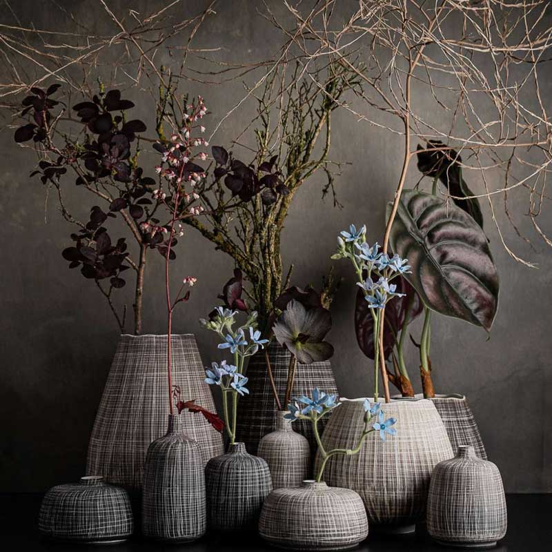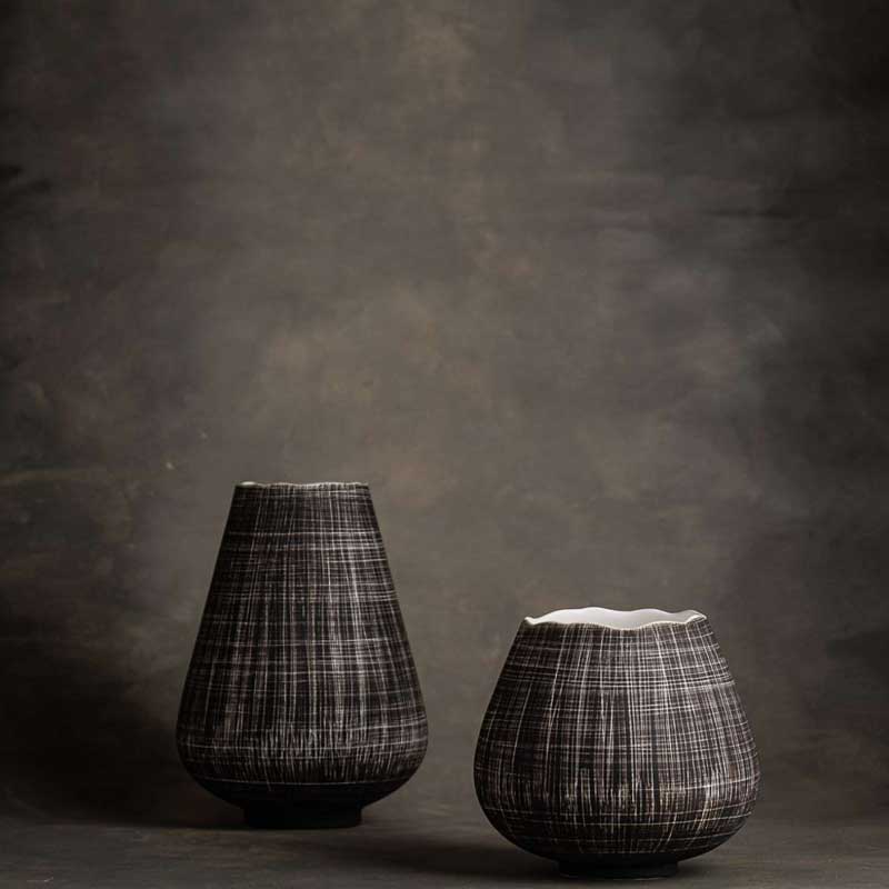 This sculptural flower pot by Klatt Objects, a premium German brand renowned for its handmade craftsmanship, is made of fine bone china porcelain. The bold black color contrasts beautifully with its irregular scratch pattern, giving it a tactile and contemporary character. Perfect as a vase or decorative piece, it brings a refined artistic touch to modern interiors.