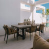 Our Indigo outdoor armchair is designed with an aluminium structure painted with anthracite powder paint and beige synthetic rope.