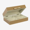 The box features a stylish handle made of buffalo horn, adding a touch of sophistication and uniqueness to its design. The amber exterior exudes warmth and elegance, while the interior is lined with luxurious cashmere, providing a soft and refined environment for your valuables. Inside, the box is divided into convenient compartments, perfect for organizing your items neatly.