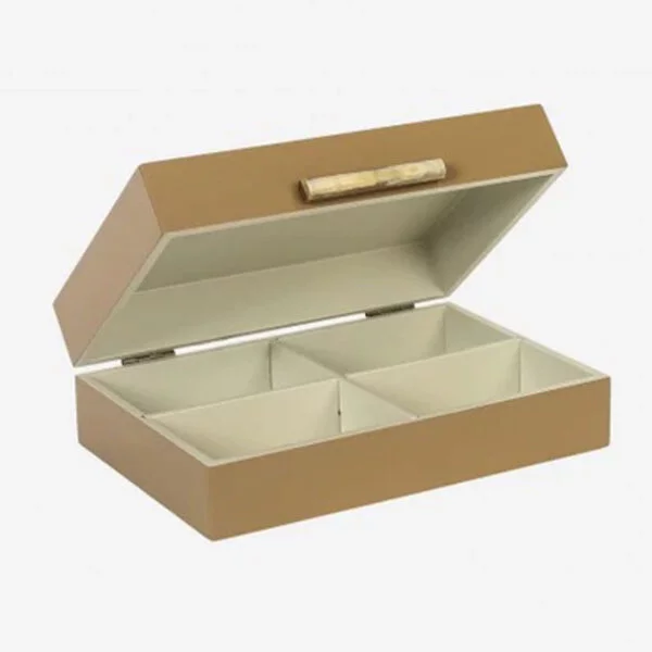Elevate your storage solutions with the Lacquer Box with Rooms & Stick S in Amber. This beautifully crafted lacquer box measures 24x16x8 cm and is made from high-quality MDF wood, meticulously coated with 13-15 layers of lustrous lacquer, ensuring a glossy and durable finish.