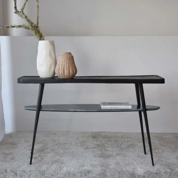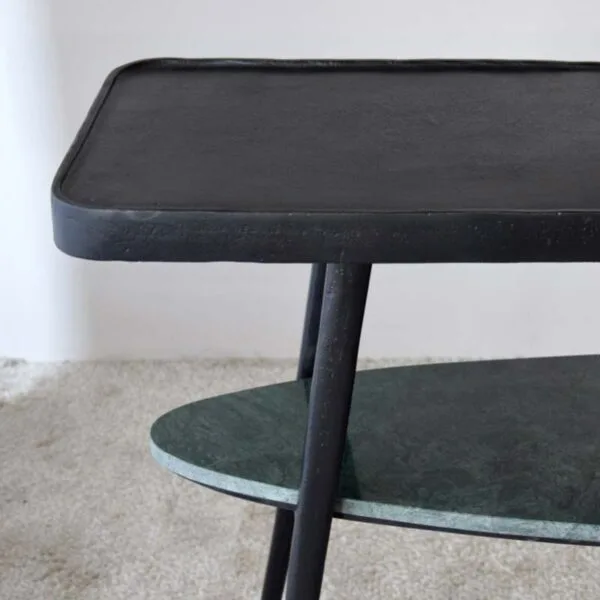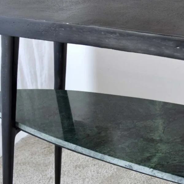 Lena Console: Black Metal and Green Marble with Timeless Elegance