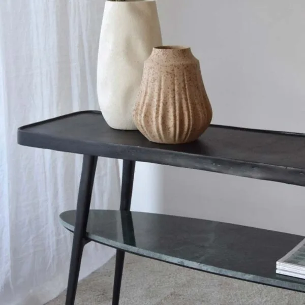 Each piece is handcrafted, ensuring slight variations in tonality and natural imperfections in the marble, making every console unique and full of character. This combination of materials creates a striking visual contrast, blending minimalism with artistic flair.