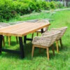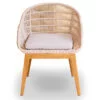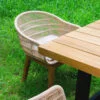 The Nature armchair is manufactured with a teak wood structure and covered in high quality beige synthetic rope to withstand outdoor environmental conditions.