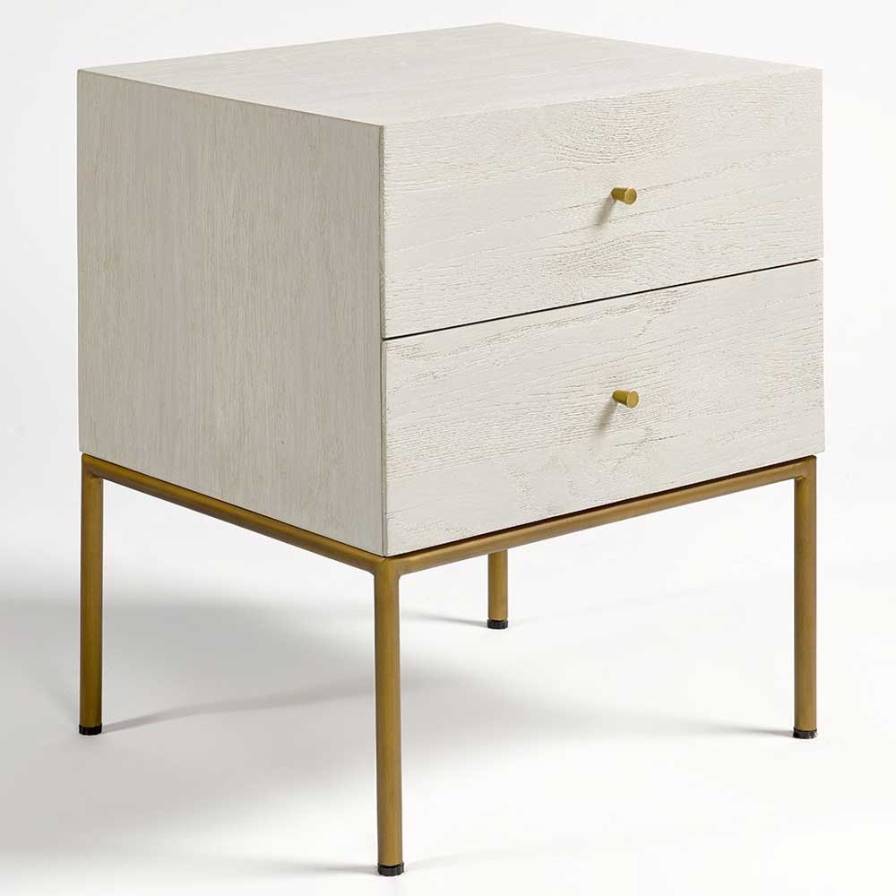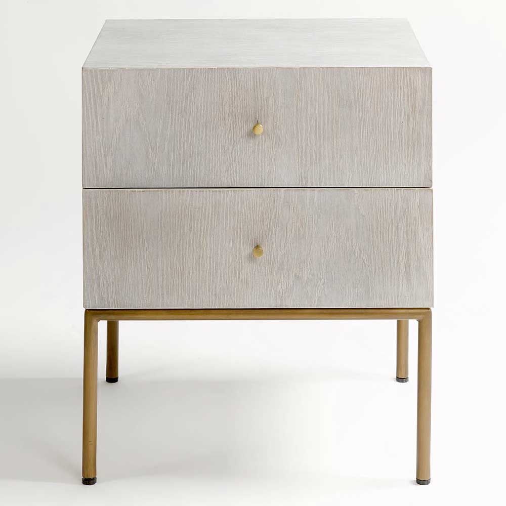 Nightstand in Patinated Greyish White Oak with Aged Gold Metal Legs