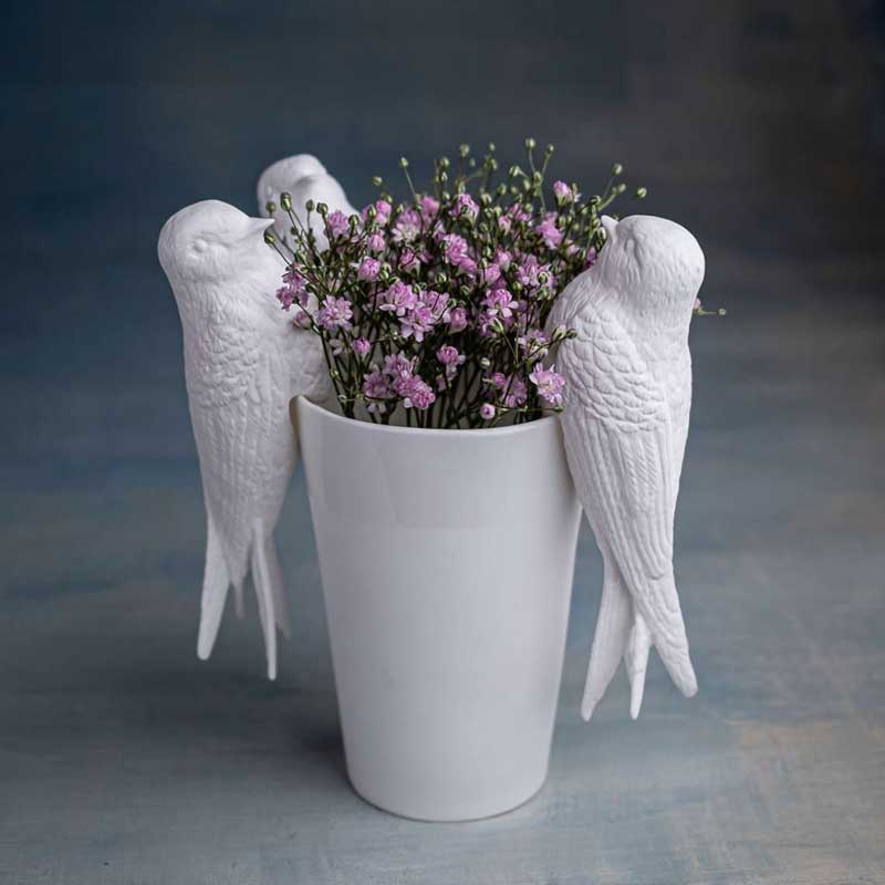 With its minimalist white finish and finely balanced proportions, the SCHWALBE decorative bird fits effortlessly into modern, classic or Japandi-inspired interiors. Whether styled as a standalone object or combined with other pieces from the Klatt bird collection, it creates a subtle yet meaningful accent.