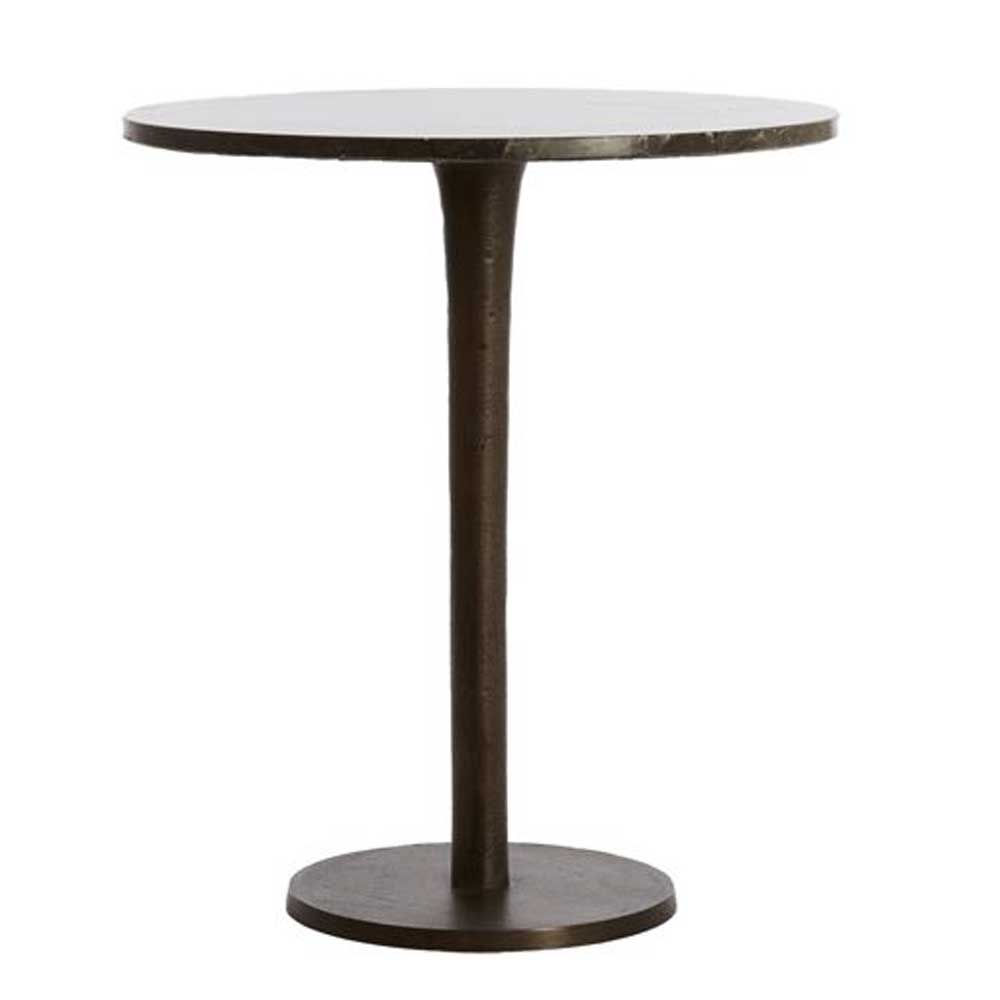 Add a touch of refined minimalism to your interior with the PAZO side table. Crafted in elegant dark brown metal with a round dark brown marble top, this piece embodies a balance between industrial character and timeless style.