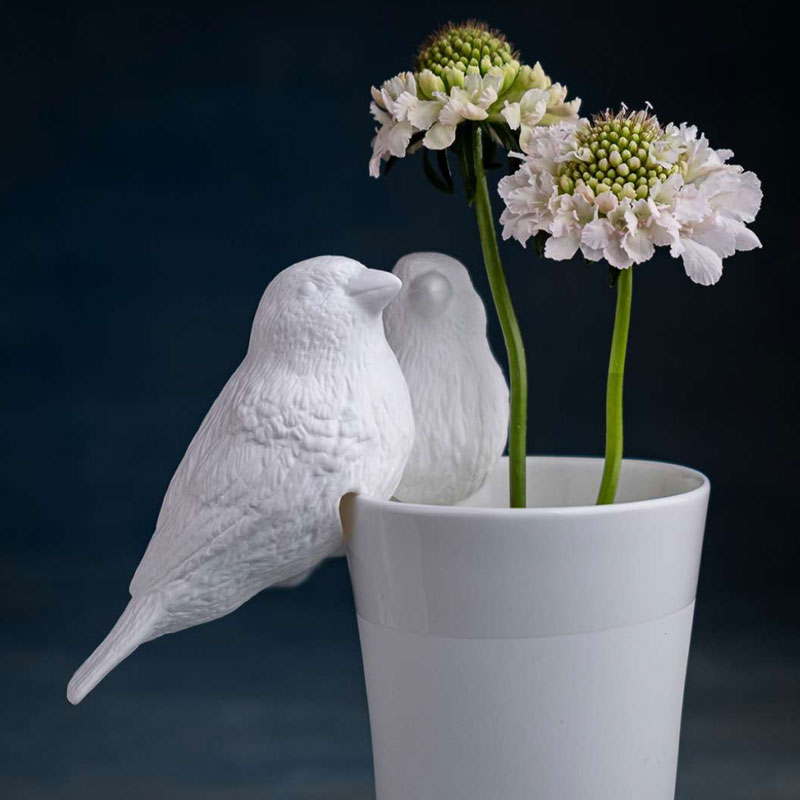 The cheerful house sparrow, known for its resilience and sociable nature, is a symbol of simplicity and joy. Just like in nature, this little bird prefers company and proudly joins the KLATT collection of birds alongside the bluetit, wren, and robin. Crafted from fine bone china porcelain in a crisp white finish, the SPATZ bird adds a gentle natural accent to any interior.