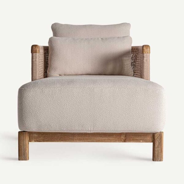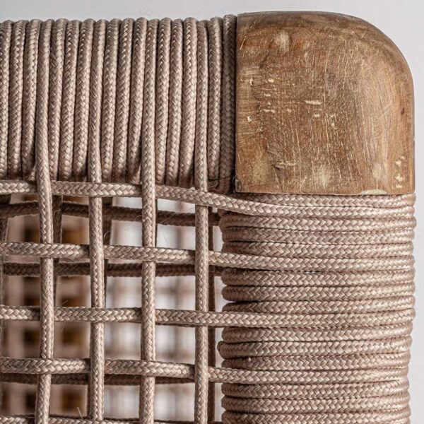 Materials: Recycled teak wood (brown), recycled polypropylene rope (beige), foam