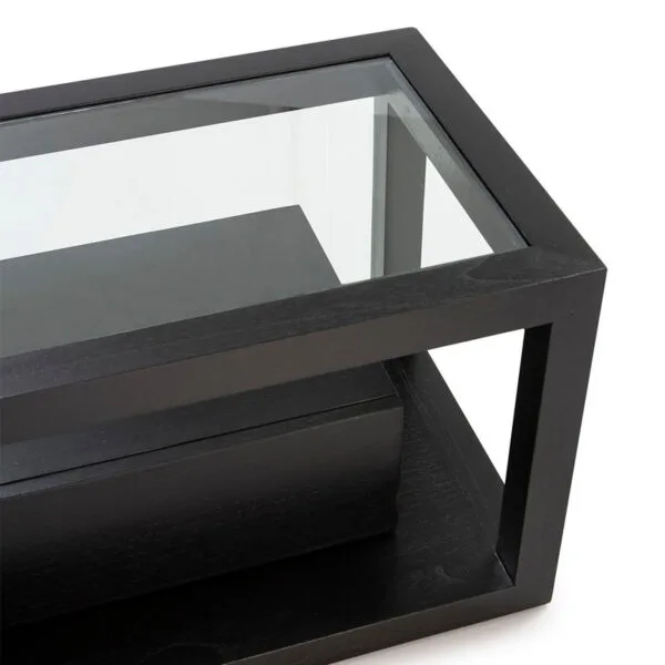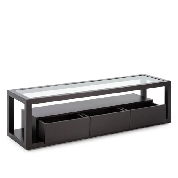 Sleek and Functional TV Stand – Glass and Cedar Wood Black (160 cm)