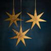 Wooden star made of jackfruit wood (Artocarpus Heterophyllus) on waxed cord.